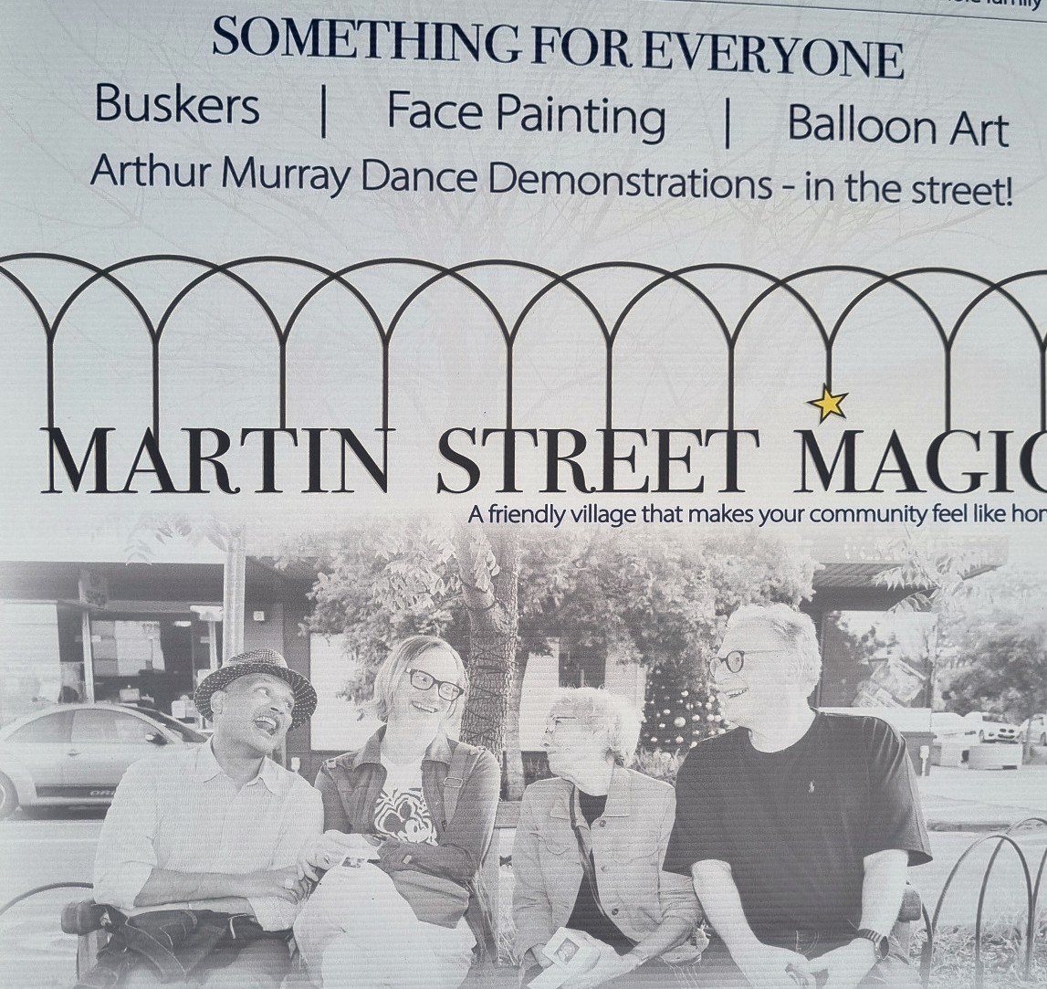 Martin Street Magic is a community celebration featuring buskers, face painting, balloon art, and Arthur Murray dance demonstrations.